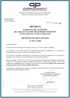 activités de collecte et de transport par route et de négoce et de courtage de déchets non dangereux.